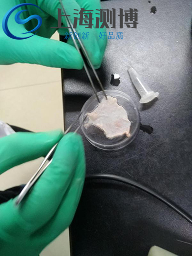 3、皮膚去脂肪層鋪展開(kāi)效果取材,準(zhǔn)備放入適配器液氮冷凍。